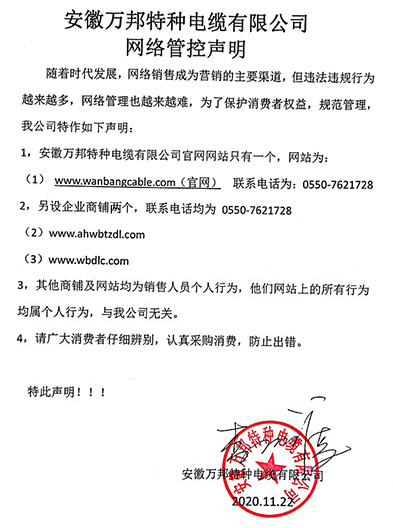 鄭重聲明:安徽萬邦特種電纜有限公司官方網站為:www_wanbangcable_com.sujiamall.com,除此之外無任何子網站或合作網站,其余均為假冒偽劣。電話:0550-7621728 13485756353 地 址:安徽省天長市滁州高新技術產業開發區經四路29號